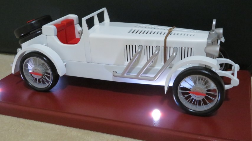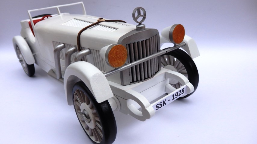 1974 HQ Holden Monaro complete with Dice hanging from the rear vision mirror. I only made two of these during the Commonwealth Games in 2018. The battery box was in the boot and the gear shift acted as the on/off switch for the lights.1928 Mercedes Benz won the Grand Prix with this car nick named the White Ghost. It was designed by Ferdinand Porsche just before he went on to start his own company. At 190km/hr it excelled at hill climbs and was favoured by the elite at the time.