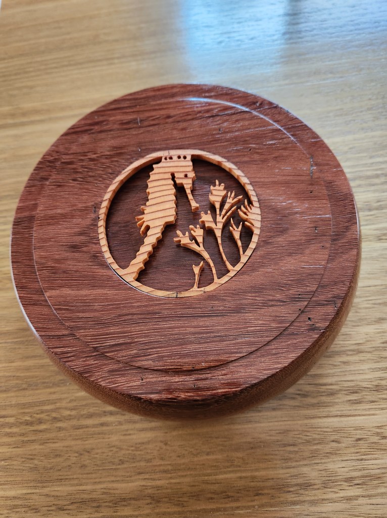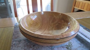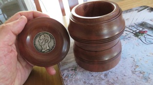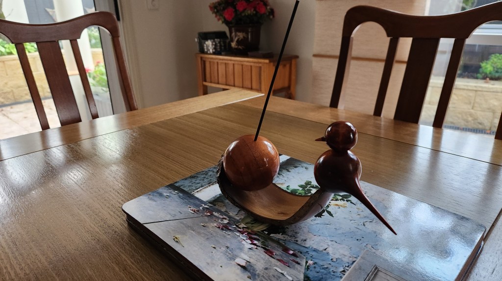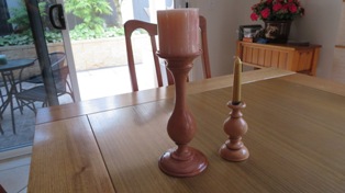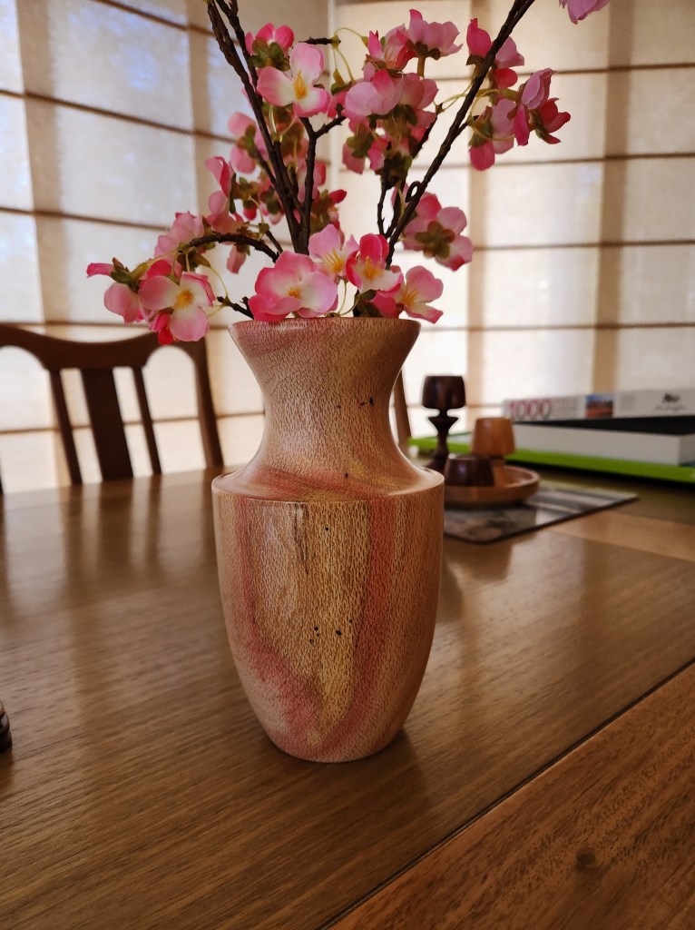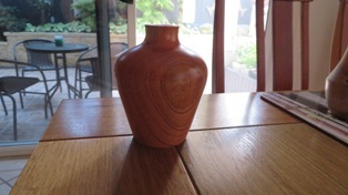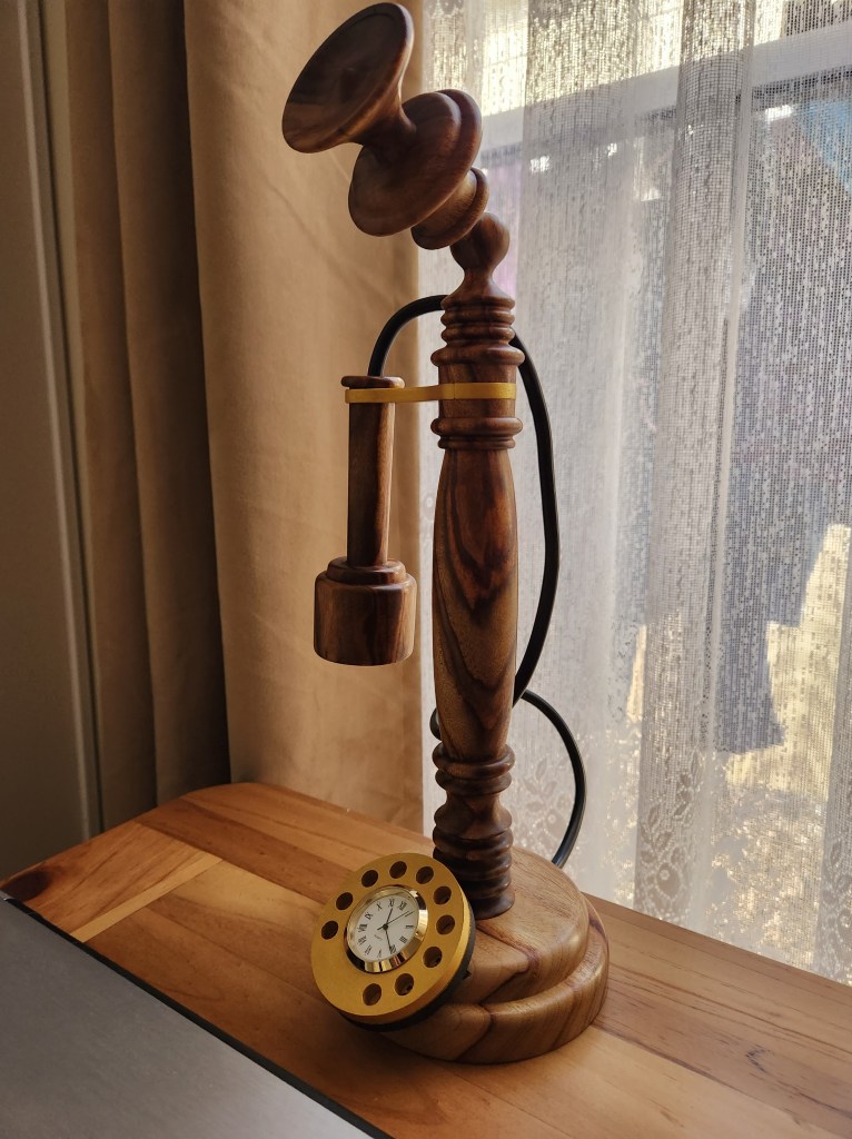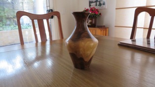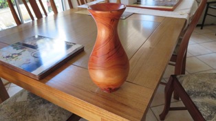 A Mortar and Pestle used all the time by my Son in Law who is forever grateful. This piece did actually win Third Place in our local Club Show in 2023. The wood came from flooring timber that was left over at the local Bunnings Store. Hardwood Jarrah and needs a constantly resharpened chisel to work it. The Pestle was from what I thought was a piece of Gum Tree. It splintered easily as I was turning it and the chisel had to be super sharp to get the finish. Both pieces were finished with 3 coats of sanding sealer then 3 coats of friction polish.The wonderful colours of Silky Oak. I experimented a little with this vase making my own mixture of finish using 50% Marine Grade Varnish, 25% low odour Turpentine and 25% Light Coloured Linseed Oil. This allowed me to make up small quantities in 50ml bottles to avoid the wastage currently happening with the large containers of Danish Oil going off.Don’t know what this timber is. Best guess is a Gum Tree although that is a very generic class. My bicycle riding mate and I spotted it on the side of the road around April 2023 and it turned out better than I could have hoped for. Lots of sanding including using Yorkshire Grit, then finish with Friction Polish. There was enough timber to make two pieces.This was the second piece turned from that unknown Gum Tree timber log in May 2023 and it also showed off the unusual grain pattern. I hollowed this one out and it actually won First Place in the Mudgeeraba Show in 2023.A Sugar Bowl with it’s own wooden spoon. Making Spoons is no easy task and I’m not sure this one was fully functional.This was one of my early pieces learning the craft of Woodturning and it started out as a lidded Jar. I was then given this Dutch Coin so I inserted it into the lid and turned my Lidded Jar into a Money Box.Camphor Laurel Platter about the size of a plate. This timber has the most wonderful grain patterns. Made in February 2023 and finished with Danish Oil.This bowl was cut from Mango Wood in January 2023. You can just see the faint tinge of green. The finish is from Danish Oil that dries to a food safe and water resistant finish.A Chess Set turned from Silky Oak showing the lovely Red Streaks through the white pieces. The board is made from pieces of MDF glued onto a base plate. My Chess Buddy beat me on our first ever game with this set, then demanded a trophy for his achievement.A Biscuit Barrel made from Merbau in November 2022. A very hard wood but finished beautifully with Aussie Oil Friction Polish. This came as a waste piece of timber from a structural beam that my neighbour offered me, and I was able to return it to him as a finished Biscuit Barrel.A nicely shaped Vase from Australian Red Cedar. A light wood that is easy to turn but difficult to get a good finish. I used Cabots semi gloss clear varnish. Lots of sandpapering. This Vase won First Place in our local Club Show in 2023.An interesting piece with the base still featuring the original bark from the branch around the edges, the Sphere is from Red Cedar and was supposed to be larger but the more I tried to perfect it, the smaller it got, and the bird is also from Red Cedar but I stained it darker. Then I turned it into an Incense Burner, the ash falling nicely into the base plate.This piece was turned from an old piece of flooring timber and I’ve only shown the base. This was one of my first attempts to insert a scroll saw pattern into the base. This Sea Horse design is made from Oregon.A couple of Spinning Tops made from Hard Wood. My very first attempt at these and they kept us occupied for quite a while learning how to get them to spin.A Silky Oak Bud Vase with a 22mm glass tube inserted so you can carefully fill it with a liitle water and keep the flower alive a little longer.The Dip Bowl is from Cherry Wood supplied by a good mate at Woodturners, and the insert comes from an inlaid factory in Italy.An old fashioned Telephone (Not Working) mostly made from Camphor Laurel, with a clock inserted for a bit of usefullness. These were known as Candlestick Phones common around the 1890’s onwards. It took 3 weeks to finish this project and was mostly all turned on the lathe.This vase is from Silky Oak. The timber was dried off in the microwave for three weeks which removed about 700ml of liquid. The log was put into the microwave for 1 minute on high then rested for an hour before repeating. It was still a little moist in the centre but good enough to turn into a vase. The colour was too good to ignore and it polished up beautifully.Practicing in designing a couple of Candle Sticks. I drew up the designs on a sketchup program first and used marine grade polyurethane as a finish. The tall one is made from Red Cedar and it actually won Third Place at the Mudgeeraba Show in 2023. The smaller one is cut from Oregon Timber.
